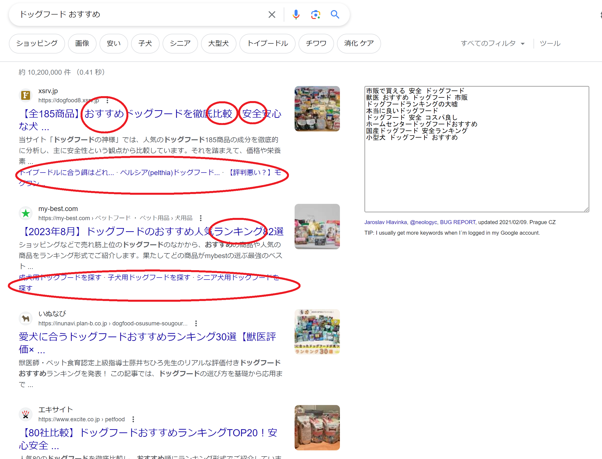 例えばターゲットキーワードが「ドッグフード おすすめ」であれば、