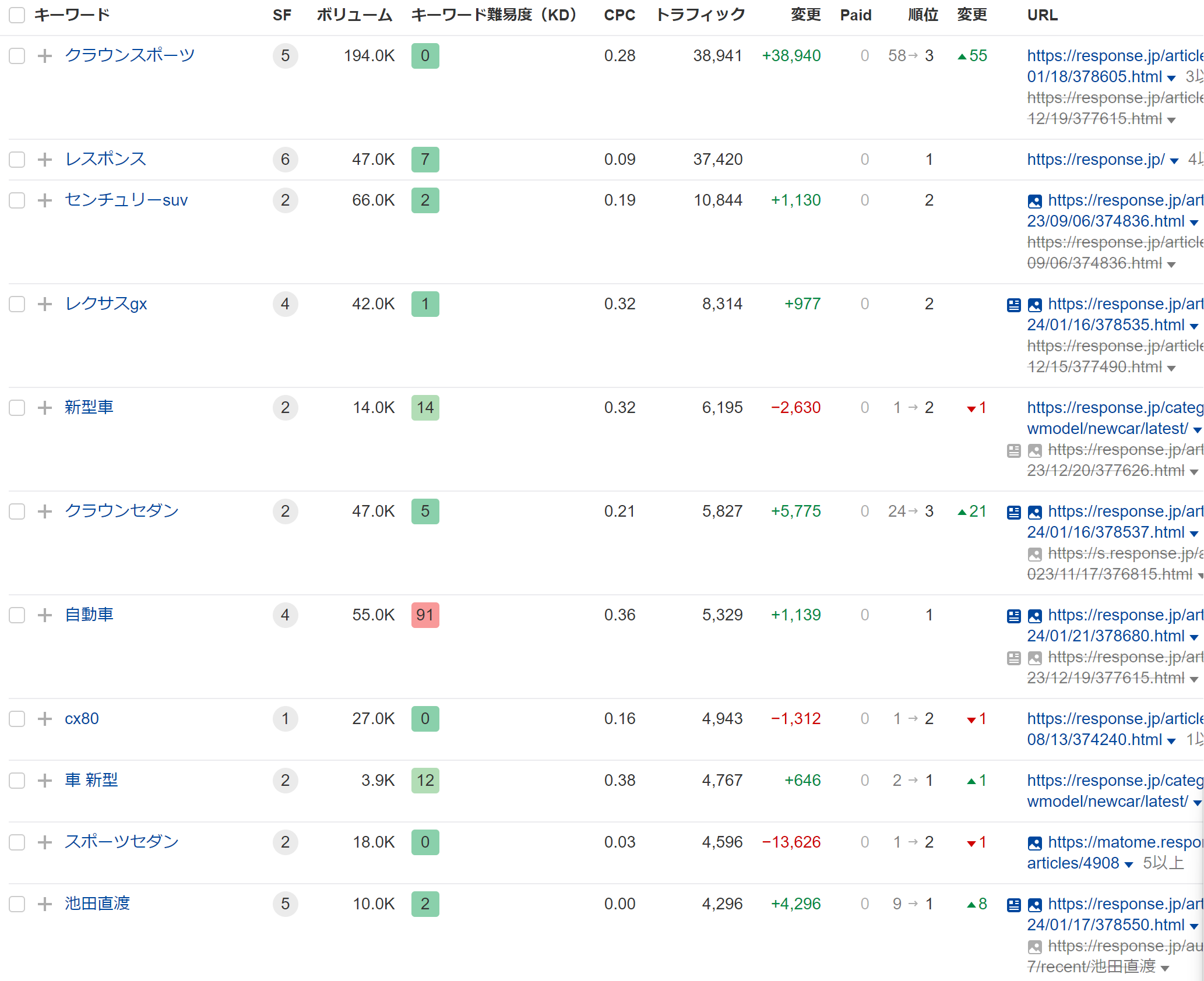 しかし「2023 ニュース」というVol.600のクエリでは上位表示していない。そもそも「2023 ニュース」の検索意図に車やバイクの検索意図はない。いくらドメインパワーが高くても(このサイトのドメインランクは76)上がらないクエリがあるということになる。